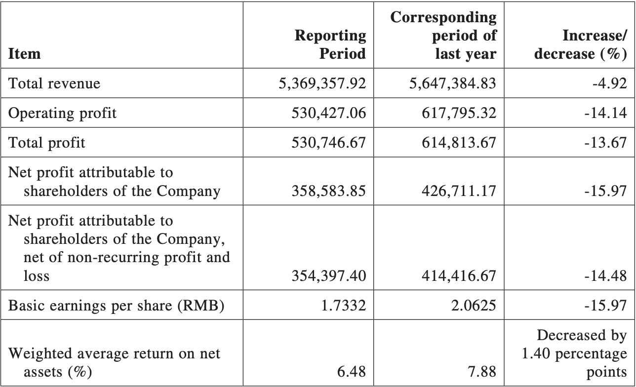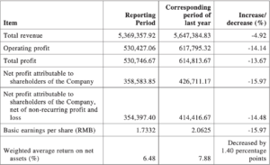 El beneficio neto atribuible a los accionistas disminuyó aproximadamente un -16 % hasta 3.585 millones de CNY (520 millones de dólares estadounidenses) durante el año.