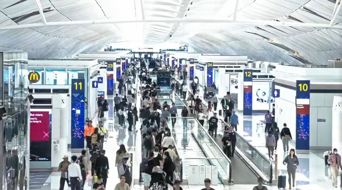 Porcelana. El Aeropuerto Internacional de Hong Kong atendió a 61 millones de pasajeros en 2025, un fuerte aumento del 15% interanual.