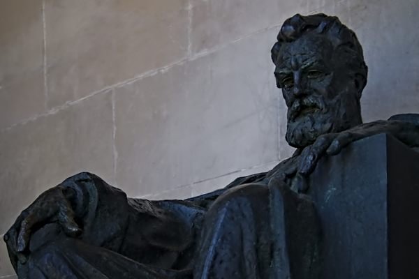 Con su parecido con la famosa estatua de Abraham Lincoln en el Lincoln Memorial en Washington, D.C., esta imponente estatua ubicada en la oficina de Bell Telephone Company en Brantford sorprende a muchos transeúntes.