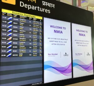 Con un toque elegante, las pantallas digitales de NMIA dieron la bienvenida a los visitantes de la industria que viajaron a Bengaluru para asistir a la Conferencia APTRA India.