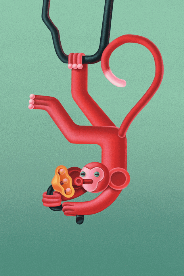 Para el año pasado, María Maca Vivió en Sri Lanka, donde la flora y fauna tropical la inspiraron a continuar con su vibrante vida. bosque sin fin serie. En el característico estilo suave y caricaturesco del artista, Ilustraciones vívidasLas criaturas emergen de entre el follaje gigante, se aferran a las palmeras y se duermen en las altas ramas. También comencé a incorporar elementos animados que dan vida a las escenas.