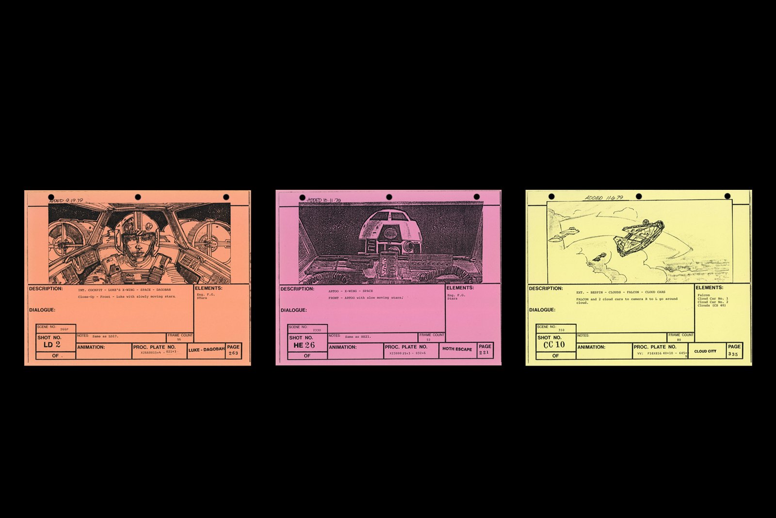 Posee un pedazo de historia cinematográfica con estos guiones gráficos originales a partir de fotografías de escenas famosas de El imperio contraataca y El regreso del Jedi. Con sellos de producción de ILM y algunos con la inconfundible “J” de Joe Johnston, cada pieza ofrece una mirada detrás de escena de cómo se concibió por primera vez una de las secuencias más memorables de la saga. Algunos de los guiones gráficos únicos (con agujeros que estaban allí cuando originalmente se guardaban en orden en una carpeta de anillas) provienen directamente de la colección personal de Lorne Peterson, el artista de efectos ganador del Oscar cuyo trabajo en Indiana Jones, el Templo Maldito, Parque Jurásico y Los Cazafantasmas ayudaron a dar forma al aspecto de las películas taquilleras modernas. Otros se atribuyen al artista Nilo Rudis Gamero. Como raros artefactos de la Edad de Oro de los Efectos Prácticos, sirven como un recordatorio tangible de la artesanía, la imaginación y el ingenio práctico que sustentaron las películas originales de Star Wars.