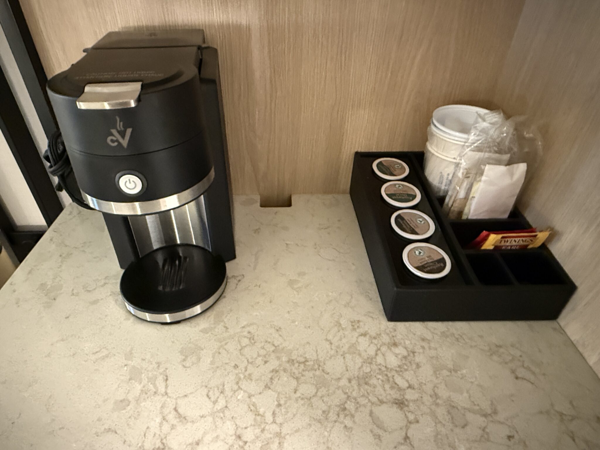 - habitación: Reservé una habitación estándar de 300 pies cuadrados “recién renovada” y no me ascendieron, aunque había muchos otros tipos de habitaciones disponibles. La habitación era pequeña y, aunque el interior era claramente nuevo, no parecía comercial, como si los muebles hubieran venido de Ikea y hubieran sido ensamblados en el lugar.