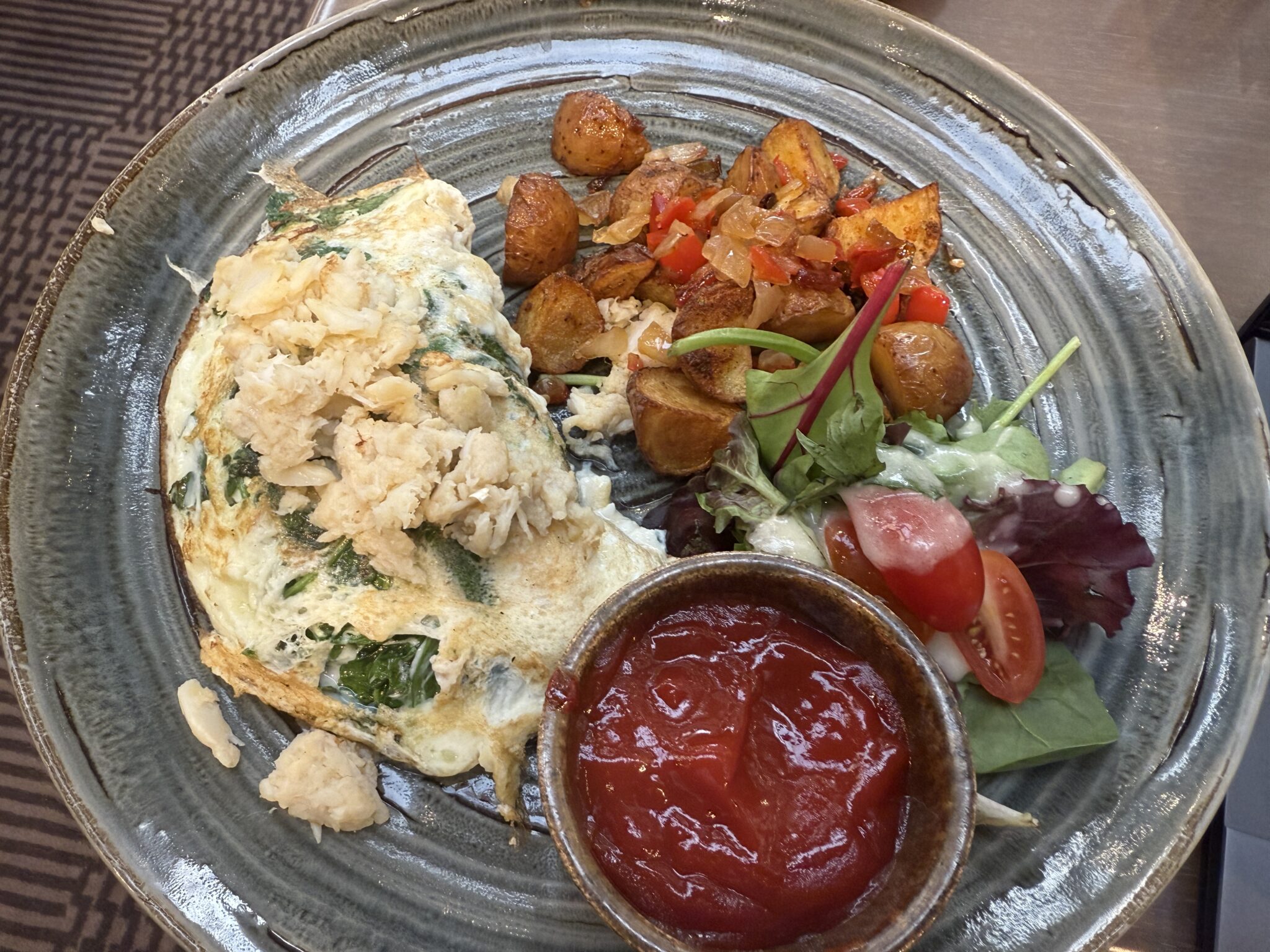 - Desayuno gratis: Servido en el primer artículo. Los globalistas pueden optar por pedir del menú o disfrutar de un modesto desayuno buffet. Pedí una tortilla un día y pan ahumado al día siguiente. Ninguno de los dos era muy bueno, y ambos platos parecían haber sido arrojados al plato desde una distancia de dos pies.
