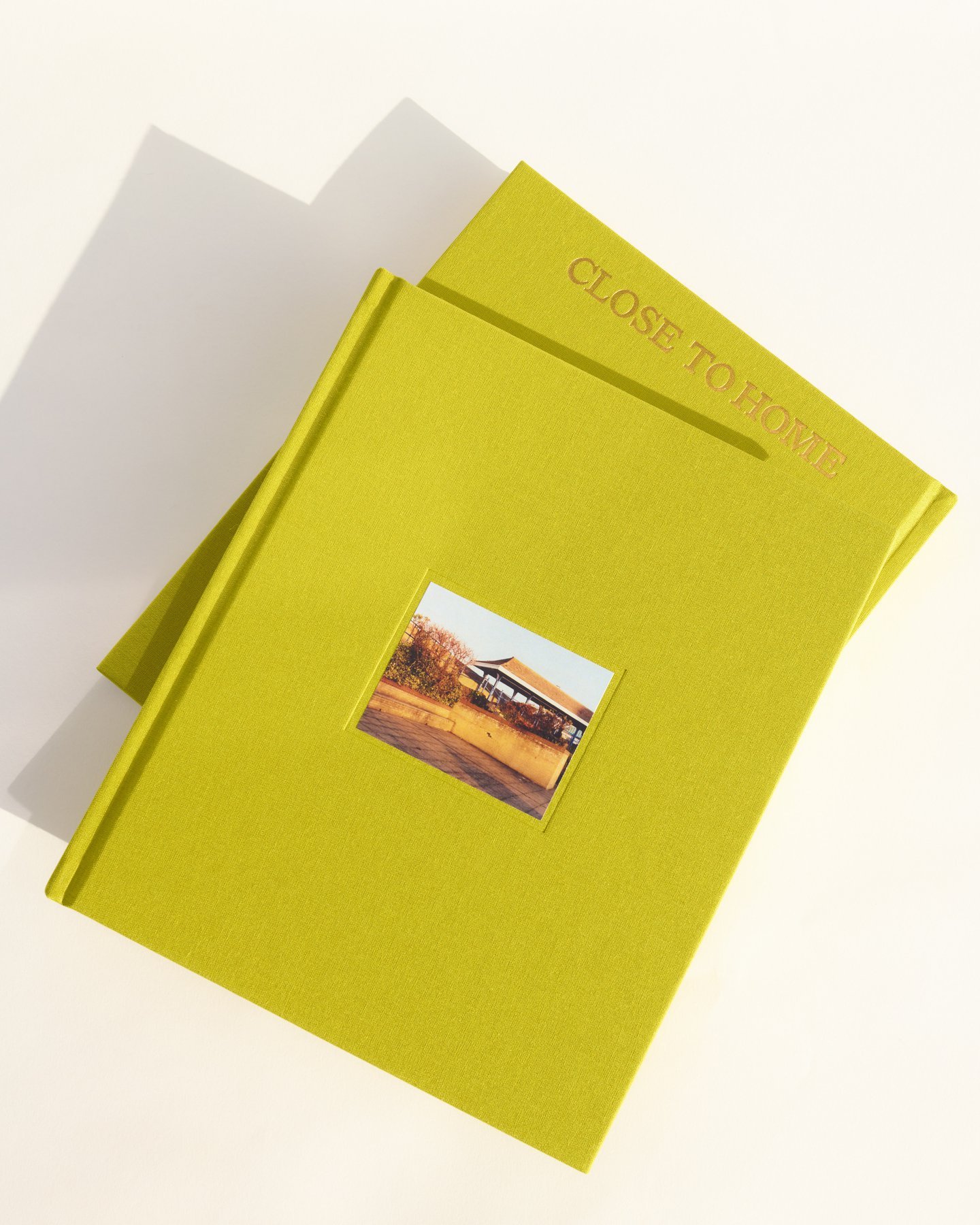 El libro se editó a lo largo de nueve meses en el cuarto oscuro de Laura, pero la tarea de edición fue más difícil que fotografiar, debido a la fragilidad de las imágenes y al difícil proceso de organización. Junto con su compañero Thomas (de Guest Editions), la pareja armó la primera edición y encontró una secuencia natural, impulsada por el hilo narrativo de la vida de sus abuelos en orden cronológico. “Quería que el libro pareciera algo que pudiera existir en la época y el estilo de la casa”, dice Laura. “Siempre las imaginé de color naranja o verde, como las cortinas que hacía mi abuela; encontramos el tono exacto en la tela Windsor para cubrir el libro. En la portada hay una pequeña imagen de una pared que usábamos como portería para jugar al fútbol cuando éramos niños. La parte posterior del libro, hecha de pan de oro, lleva el título: cerca de casa“.