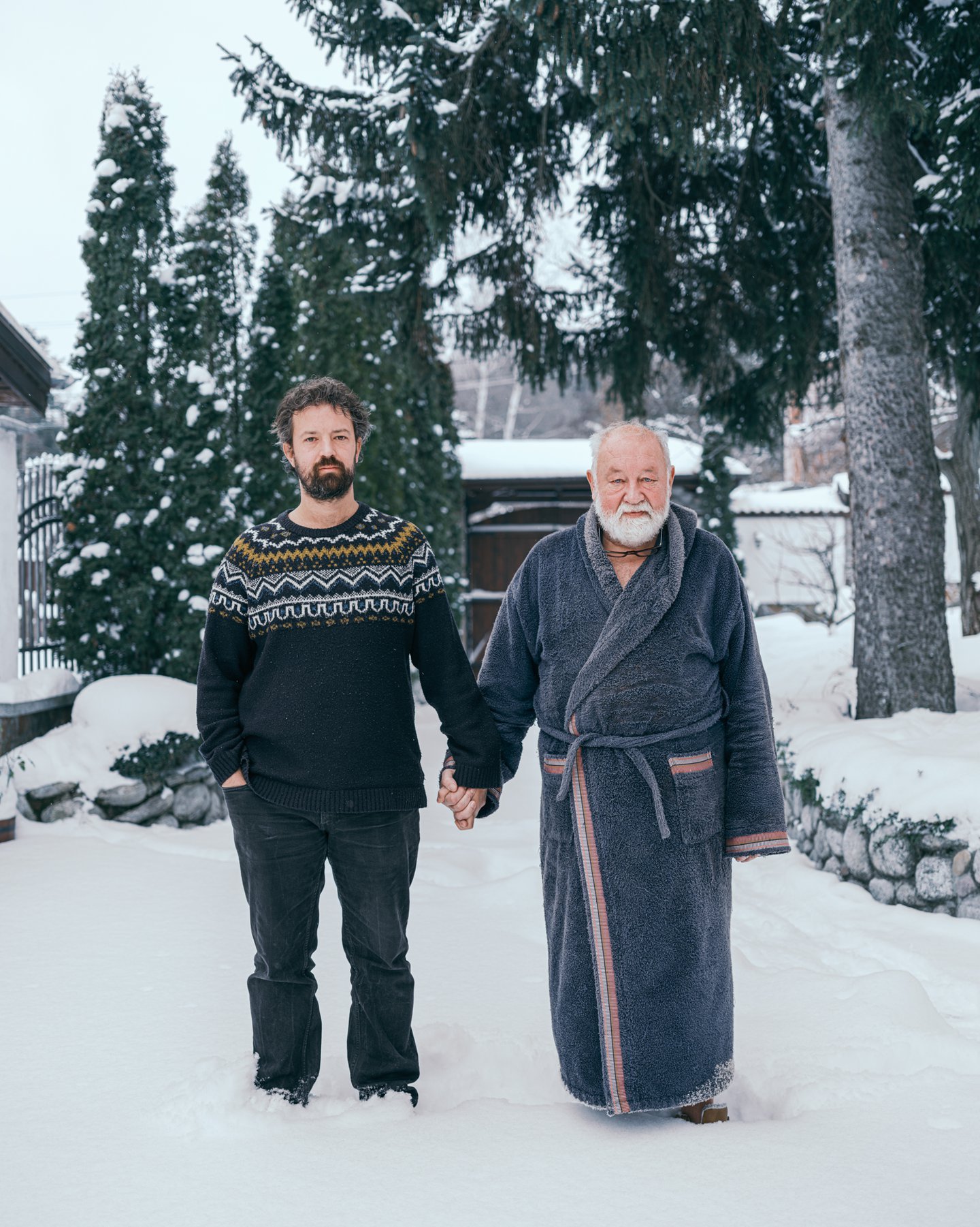 Un lugar donde el fotógrafo incluye algunas pistas contextuales es en el fondo de cada fotografía, que ha sido cuidadosamente elegido para reflejar la identidad cultural de padres e hijos; Para Valerie, el proyecto es tanto un estudio del patrimonio como de las conexiones familiares. “El trasfondo es parte de esa historia, así que lo elijo en función de lo que se aplica a ellos: su entorno de trabajo, su hogar o el lugar que refleja lo que comparten”, dice Valerie. “A medida que el proyecto crece de un país a otro, las imágenes comienzan a funcionar como antropología visual: historias personales que también describen una identidad cultural más amplia”. Una fotografía tomada en Midyat, Türkiye, muestra a un padre y un hijo parados frente a una pared pintada de blanco, cargada de esteras tejidas, cerámica y fotografías familiares, y una alfombra estampada bajo sus pies. Otra fotografía particularmente alegre, tomada en Anzio, Italia, muestra a un padre y un hijo vestidos con los mismos uniformes azul real, parados con orgullo afuera de una carpa de circo, lo que sugiere una conexión familiar con el circo.