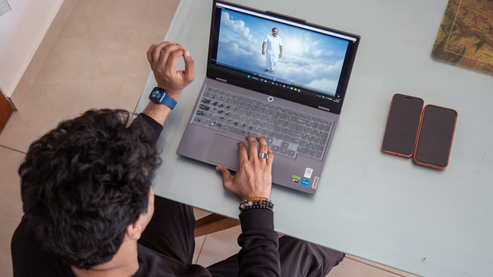 Vinayak revisa un vídeo generado por IA que recrea a una persona fallecida.