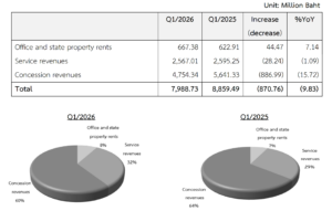 Dentro de esto, los ingresos por franquicias disminuyeron un -15,72% hasta los 4.754 millones de THB (152,7 millones de dólares), principalmente debido a menores ingresos por franquicias libres de impuestos.
