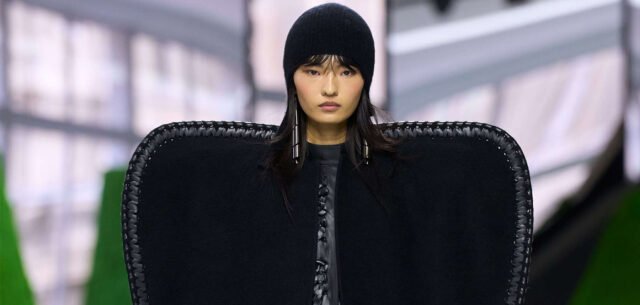 El espectáculo se abrió con una serie de vestidos de hombros anchos, hombros altos o redondeados con texturas difusas y de fieltro. Había sombreros cónicos de gran tamaño de piel de oveja y vestidos intrincados de retazos que representaban una mezcla de telas y detalles populares. Un modelo llevaba una pequeña bolsa blanda sujeta a un palo como si fuera una mochila, y otro llevaba una bolsa con un cencerro adjunto. “Queríamos trabajar en prendas arquitectónicas que pudieran expresar diferentes culturas de todo el mundo”, dijo Ghesquière. Considera el guardarropa popular como “la ropa que nos une: una antropología de la moda”, y agrega: “Creo que fue muy emocionante para Louis Vuitton emprender este viaje”.