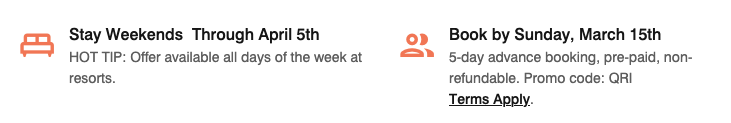 Si no está familiarizado con Marriott Escapes, son ofertas de último minuto para los próximos cuatro fines de semana en hoteles que no pertenecen al complejo, mientras que los hoteles del complejo están disponibles para estadías cualquier día de la semana durante el mismo período de tiempo. Las estancias deberán reservarse antes del próximo domingo. Tenga en cuenta que esto requiere una reserva con 5 días de anticipación y estas son tarifas prepagas no reembolsables.