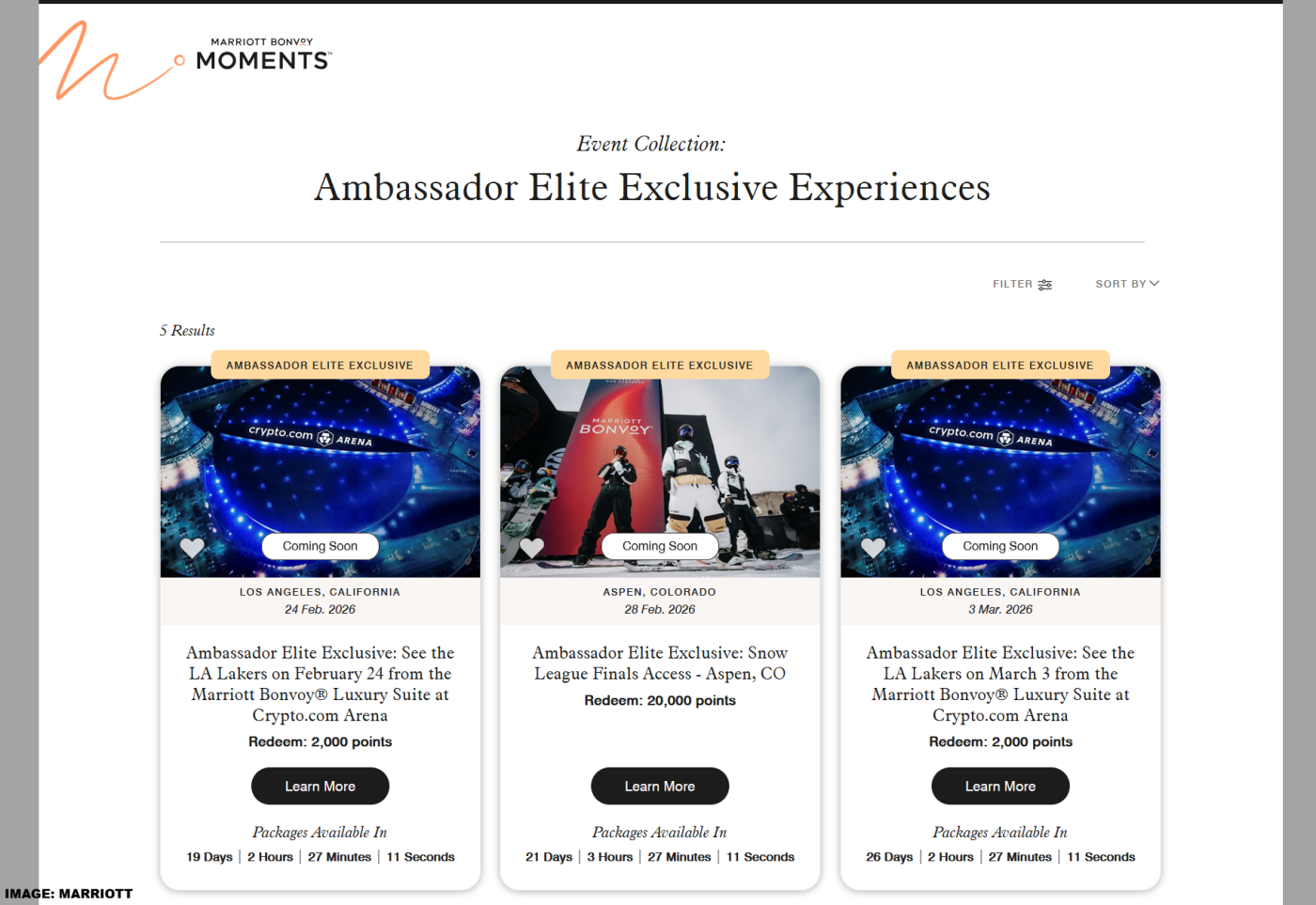 Marriott ahora está lanzando experiencias Ambassador Elite Exclusive, que solo (como su nombre indica) están disponibles para que los miembros Ambassador puedan ofertar.