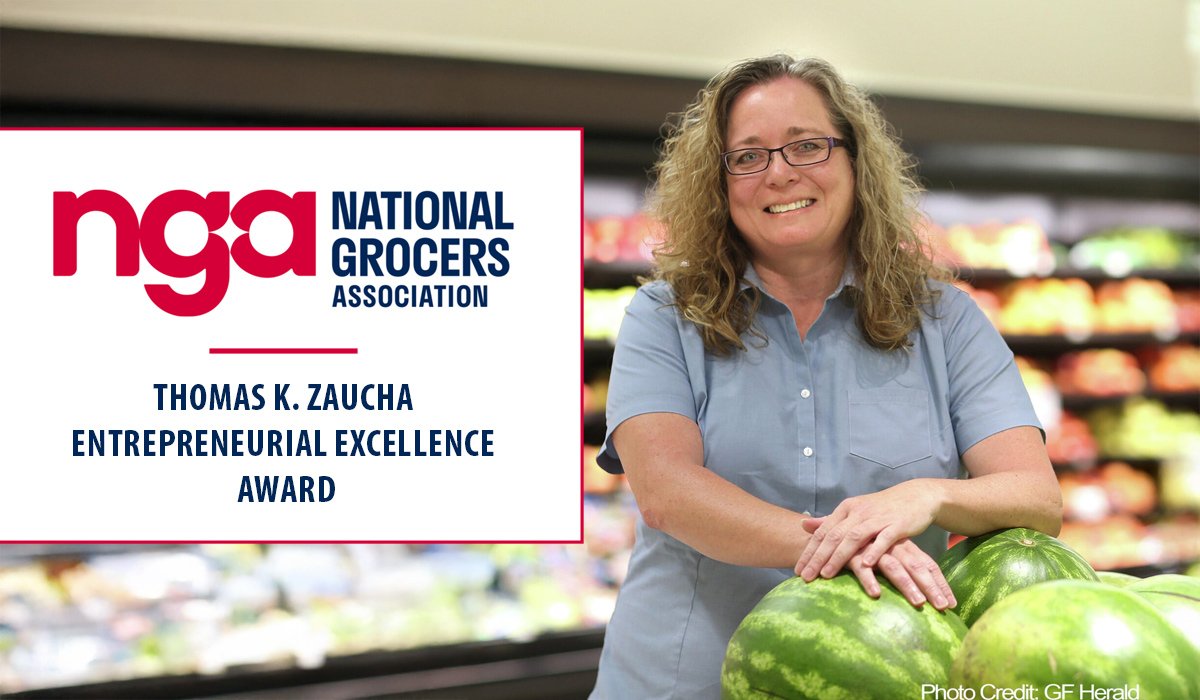 el Asociación Nacional de tenderos Christy Magnuson Nelson fue nombrada presidenta Mercado Familiar Hugocomo ganador del Premio Thomas K. Zaucha a la Excelencia en el Emprendimiento, uno de los premios más prestigiosos en la industria de comestibles independiente. El premio fue entregado por FMS Solutions durante pantalla NGA En Las Vegas.