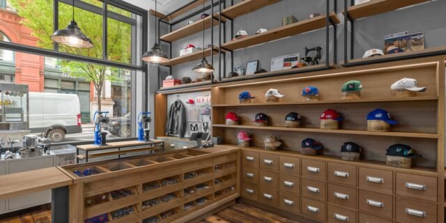 Si bien la ropa y los sombreros incluidos, junto con las ventas exclusivas internacionales, ocupan la mayor parte del inventario del buque insignia, los últimos descuentos de equipos con licencia de MLB, NFL, NBA y más se exhibirán a lo largo del perímetro de la tienda. Y si buscas algo un poco más personalizado, “The Garage”, también conocido como la estación de personalización de New Era, te permite elegir parches o pines para que tu gorra luzca aún más personalizada.