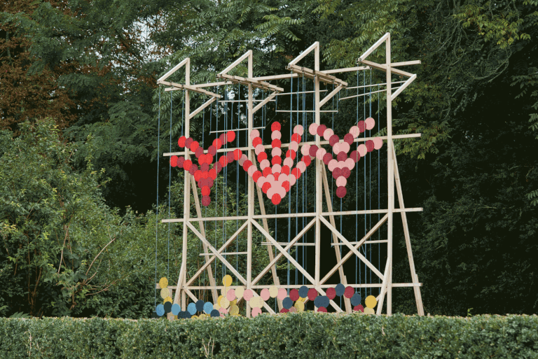Por Marion Pinafo y Rafael Pluvenage, también conocido como Binafo y BluefinageLa interacción y el juego son principios fundamentales de una práctica multimedia vibrante. ellos Esculturas cinéticasque a menudo son participativos e inmersivos, utilizan elementos de madera de colores brillantes, electrónica y marcos complejos, a veces realzados por textiles que fluyen o humo colorido que se mueve con la ayuda de motores o intervención humana.