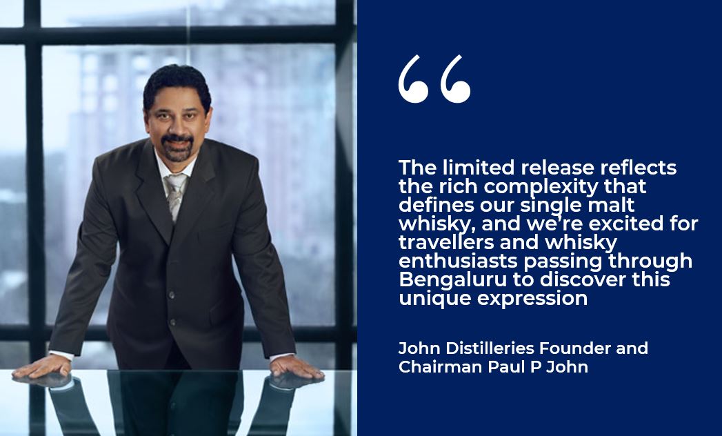 India. John Distilleries, Paul John Whisky, ha ampliado su gama exclusiva al aeropuerto de Bengaluru con una única expresión en barrica, en asociación con Bengaluru Duty Free (una empresa conjunta entre Bangalore International Airport Limited y Avolta).