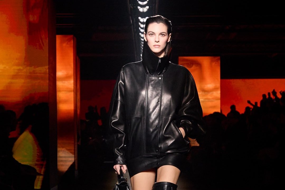 La expresión más clara claroscuro Venían en una serie de vestidos y bolsos bordados y adornados para que pareciera que la luz brillaba intensamente en sus superficies. Tenían una belleza noble. La luz y la oscuridad se expresaban más fácilmente a través de ropa físicamente clara y colores oscuros, que a veces quedaban oscurecidos por el entorno negro como boca de lobo. Sin embargo, sus materiales ricamente texturizados brillaban con brillo mientras se movía a través de la penumbra cimmeria, bloqueando la luz proyectada por las pantallas de video cada vez más tenues de Levinson. Entre esos elementos se encuentran el gazar característico de la casa, la lana mate y el cuero que, según Piccioli, ha sido prensado con cachemira para darle un brillo color melocotón, incluso en negro. En cierto sentido, ésta era una habilidad que Piccioli rara vez demostraba: su asombroso sentido del color a menudo significaba que su sensibilidad hacia las telas quedaba en segundo lugar. En Balenciaga, toma decisiones inusuales: por ejemplo, un vestido de noche columna en punto de algodón, que reduce su formalidad con el carácter de una camisa. Del mismo modo, en lugar de un corsé restrictivo, el interior de los vestidos se mantenía en su lugar mediante tejido de punto, lo que los hacía livianos al tacto, no solo en apariencia.