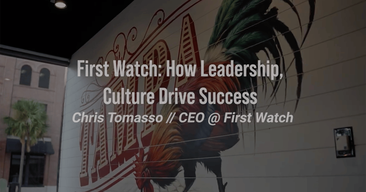 En el último episodio de Signature: A CEO Series con Sam Oches, impulsado por The Coca-Cola Company, el CEO Chris Tommaso comparte lo que aprendió sobre cultura del difunto cofundador de First Watch, Ken Bendery, cómo sus habilidades de liderazgo han mejorado a lo largo de los años y por qué sus esfuerzos por ser accesible para los empleados, que incluyen enviar notas escritas a mano y almorzar en la sala de descanso de los empleados de la oficina de la empresa, han generado confianza en el equipo.
