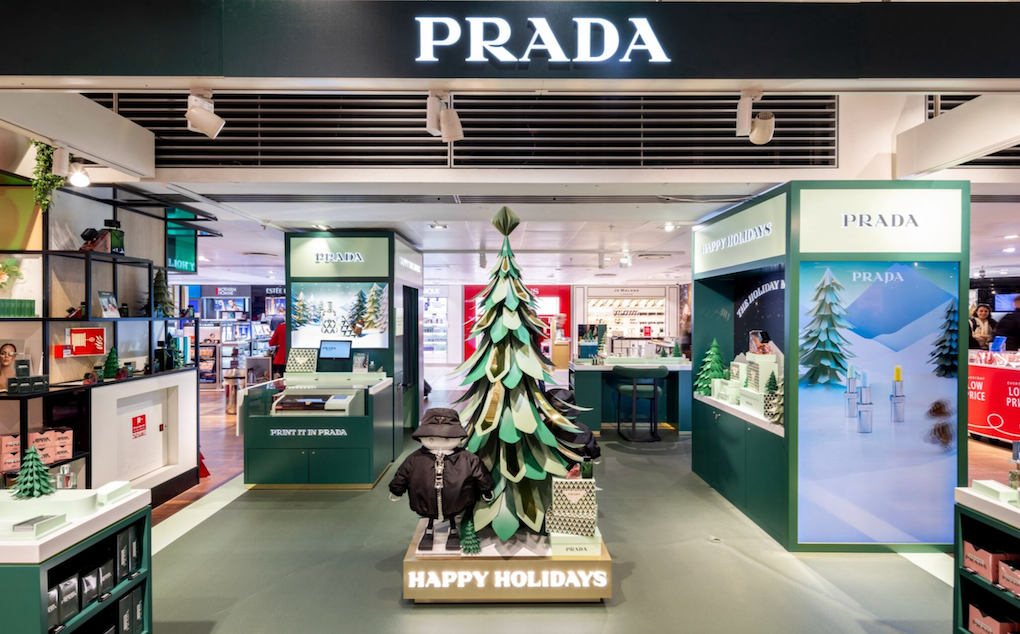 A través de la ventana emergente, los viajeros pueden tomar fotografías festivas en un fotomatón de Prada junto a un suave robot Prada. También pueden comprar una colección navideña exclusiva. Regalos Incluyendo adornos navideños de Prada Beauty presentados con los patrones de temporada característicos de la marca.