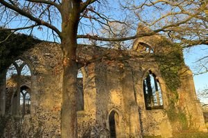 De esta hermosa iglesia quedan cuatro muros exteriores, que perdieron su techo y fueron conquistados por la naturaleza.