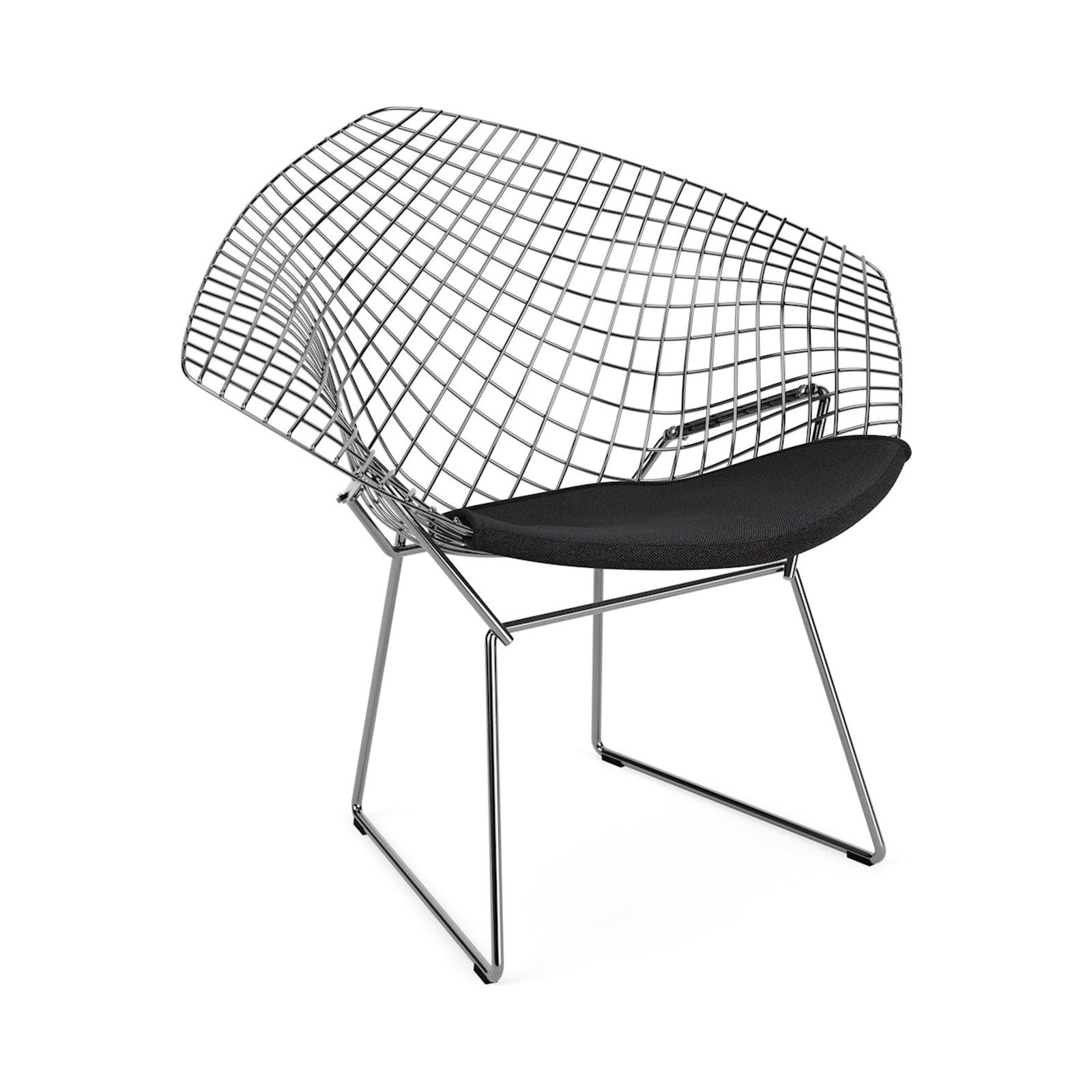 En 1950, Hans y Florence Knoll Harry Bertoy dieron la oportunidad de diseñar, esculpir o crear todo lo que quisiera. El resultado se conoce como la silla de diamantes, después de los patrones en el acero soldado en el asiento superior. La base es similar al acero, con un cromo pulido que proporciona atención visual adicional, y el cojín de asiento repentino agrega comodidad. Todavía producido por Knoll, es un símbolo del diseño de mediados de siglo.