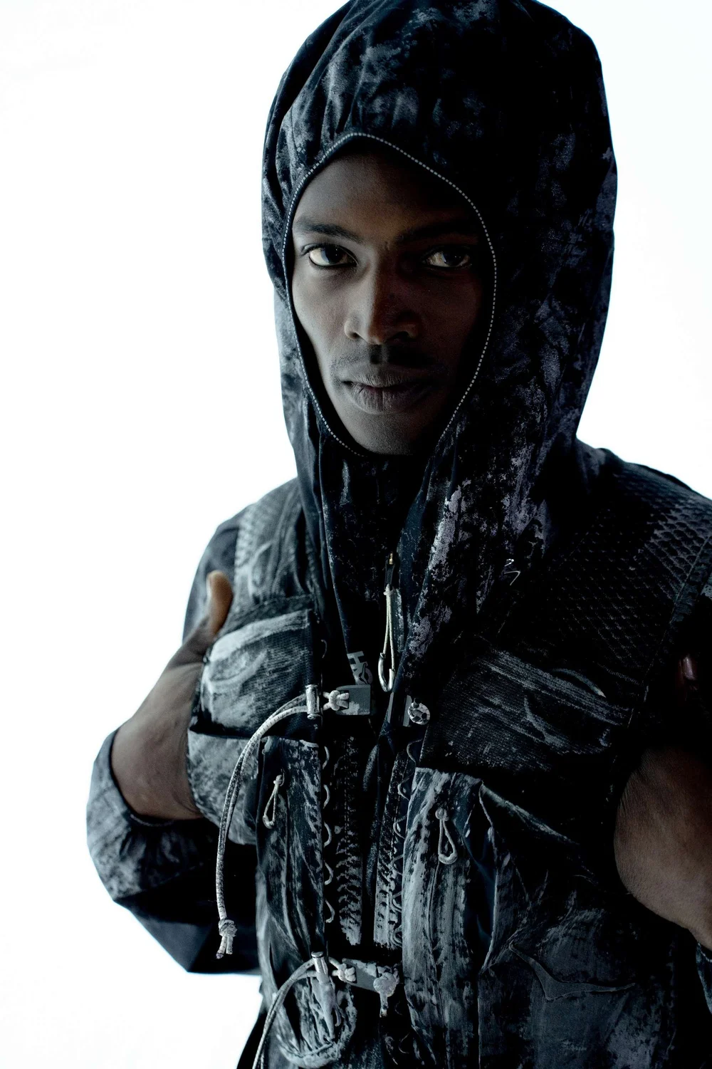 Los ocho aspectos exclusivos de MATERIA siguieron la misma lógica. MATERIA, una marca independiente con una postura coherente, un pensamiento de diseño innovador, verdadera accesibilidad e investigación de materiales sostenibles, diseña ropa que se adapta a la movilidad reducida y la discapacidad sin dejar estos requisitos en un segundo plano. Las soluciones adaptativas se están volviendo visibles, no ocultas. Los tratamientos reflectantes en piezas seleccionadas vincularon las prendas directamente con el sistema de calzado, produciendo un lenguaje temático cohesivo en toda la colaboración.
