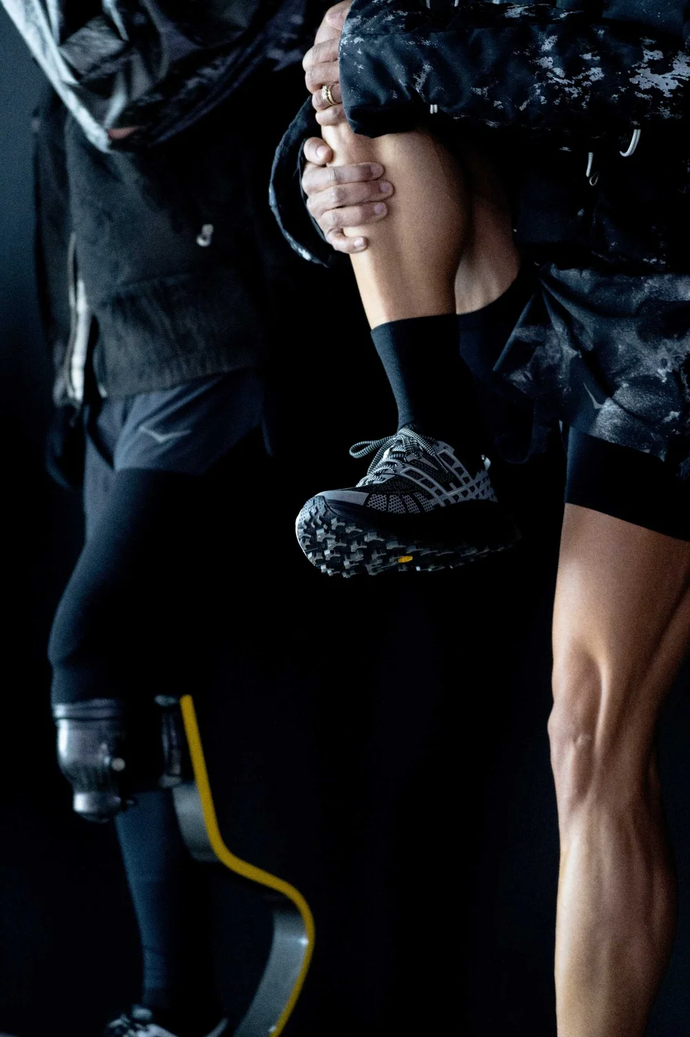 El HOKA Stealth Tech Pack dio al proyecto su base física. Tres siluetas, Bondi 7, Mafate Speed 2 y Speedgoat 2, se reinterpretan a través de limitaciones técnicas y tonales que cambian según la luz. Los detalles reflectantes se activan después del anochecer, convirtiendo lo que parece tranquilo en algo claro. La lógica es honesta: ver cuando es importante y apreciar cuando no es así.