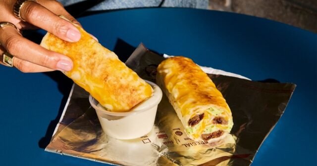 Disponibles en tamaño de refrigerio a partir del 18 de diciembre, los burritos se servirán con una opción de filete o pollo asado a fuego lento, junto con una opción de salsa cremosa de ajo, salsa cremosa de chipotle o salsa de queso para nachos, además de papas fritas con filete de nacho y ajo.