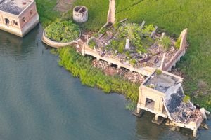 Al entrar en Charleston, cruzar el puente Ravenel y mirar hacia el norte a lo largo del río Copper, se puede ver este grupo de edificios de ladrillo en ruinas que se hunden en el agua.