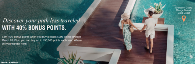 Marriot lanzado Primer POS de 2026 El mes pasado, que termina hoy. La oferta incluye un Bonificación del 40% o superior (consulte su oferta aquí) y aumentar el límite, Ambos son válidos hasta el 26 de marzo.