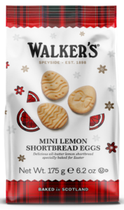 Cada bolsa contiene trozos pequeños con forma de huevo de Pascua del clásico bizcocho de mantequilla de Walker, rellenos con un toque cítrico.