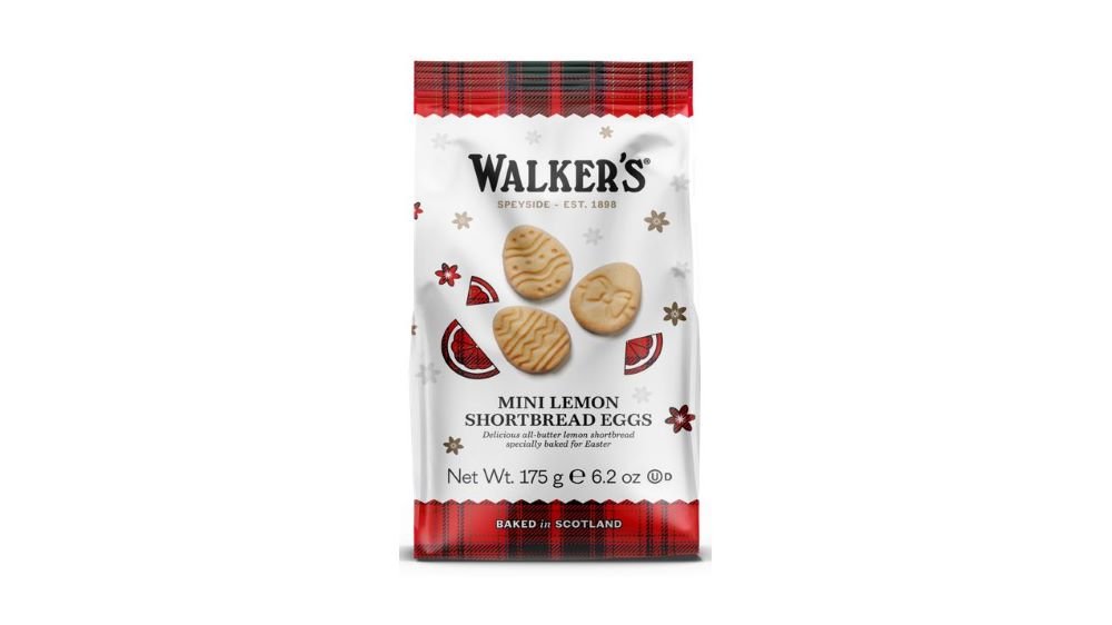 Cada bolsa contiene trozos pequeños con forma de huevo de Pascua del clásico bizcocho de mantequilla de Walker, rellenos con un toque cítrico.