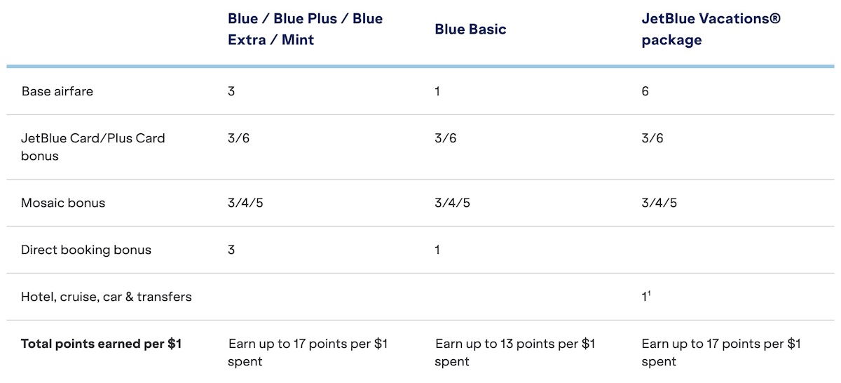 - 4x puntos TrueBlue adicionales en gastos de JetBlue (en comparación con 3x puntos para los miembros de Mosaic 1-2)