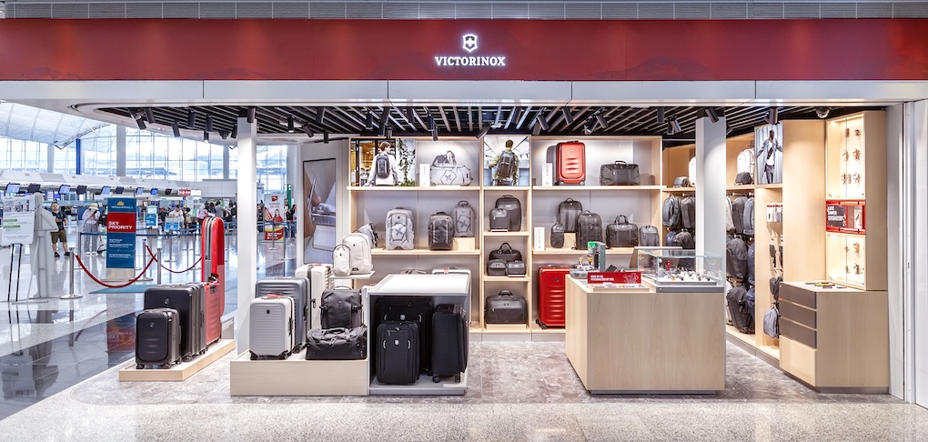 Victorinox está implementando un nuevo concepto de diseño de tienda, siendo el Aeropuerto Internacional de Hong Kong el primer establecimiento minorista de viajes que exhibe el aspecto actualizado.