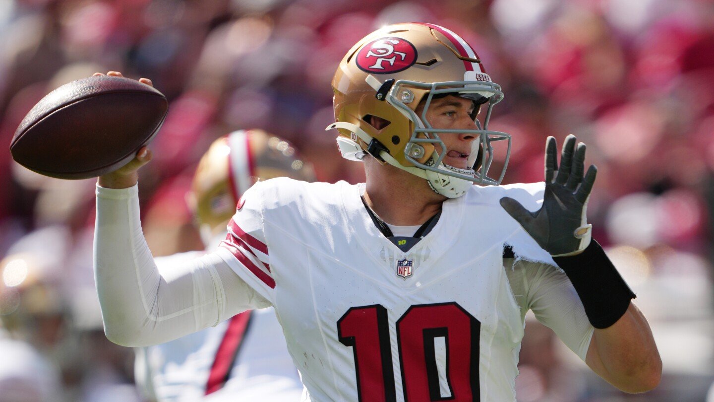 Hasta el domingo, Jones pasó el 21 de 30, pasando 216 yardas con un touchdown una vez y sin Pearsall seleccionados.