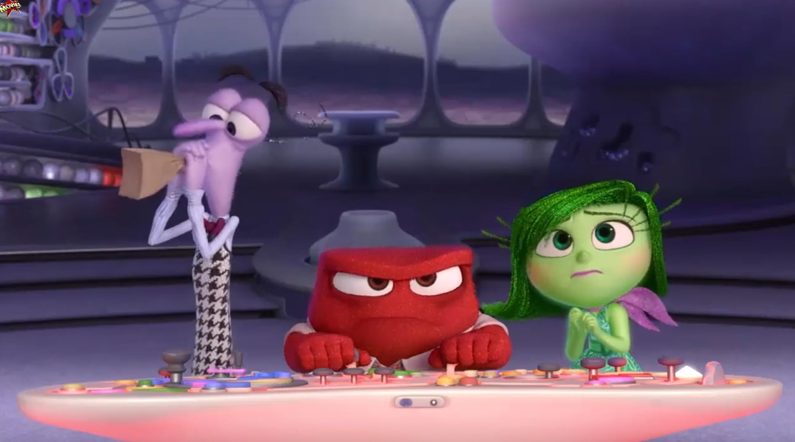 Adentro (2015) es una película de animación sobre una chica llamada Riley y sus emociones. – Joy, miedo, ira, asco y tristeza. En las películas de Riley y su familia, se mudó de Mid oeste a San Francisco.