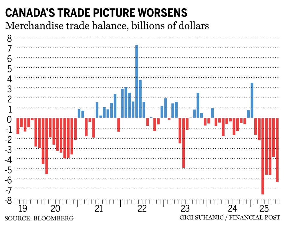 - El desplome del comercio de Canadá apunta a un panorama “sombrío” para las exportaciones mientras Trump sigue lanzando bombas arancelarias