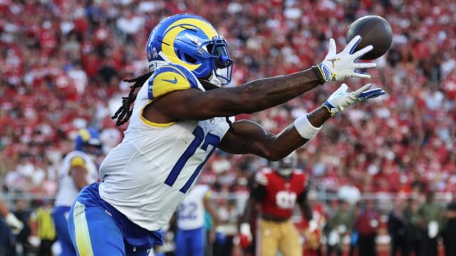 Adams, quien se encuentra en su primera temporada con los Rams. Adams y Puka Nacua tuvieron 775 yardas y cuatro touchdowns, el máximo de la NFL, con 568 yardas en recepción y nueve touchdowns, la mejor marca de la NFL. Entonces los Rams tienen uno de los mejores dúos de receptores abiertos de la NFL este año.
