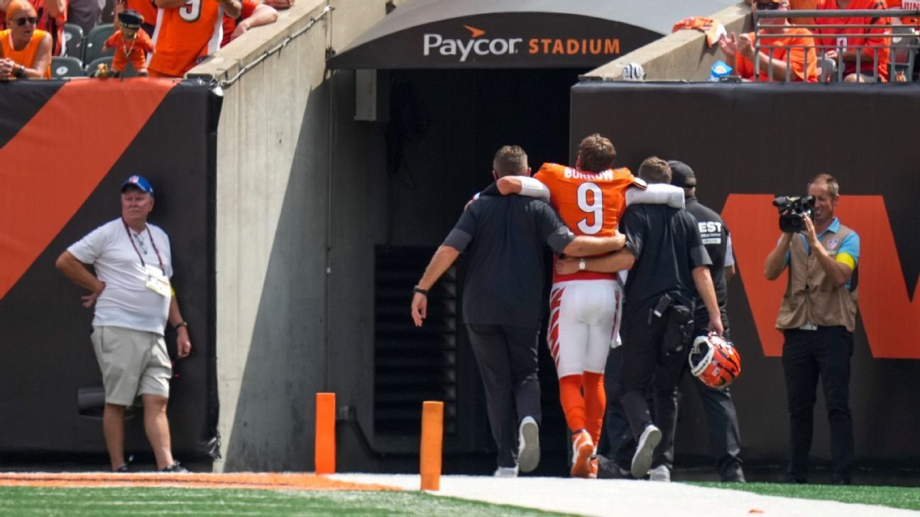 ¿Qué significa la lesión para la temporada de Burrow? ¿Y cómo afectará a Bengala, incluidas estrellas de fantasía como Ja’marr Chase y Tee Higgins? Ben Baby, Ben, ESPN, Sena, Stephania Bell y los analistas de fantasía de la NFL Matt Bowen destruyen la mayor pregunta.