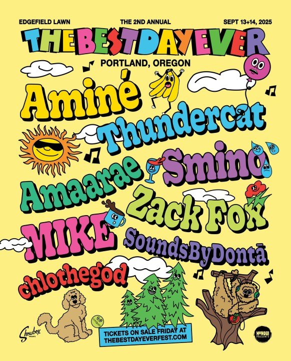 El mejor día ha anunciado Regresará al césped de McMenamins Edgefield el sábado 13 de septiembre y el domingo 14 de septiembre. Aminé, el nativo de Portland y el rapero nominado al Grammy detrás del evento, encabezará nuevamente este año.