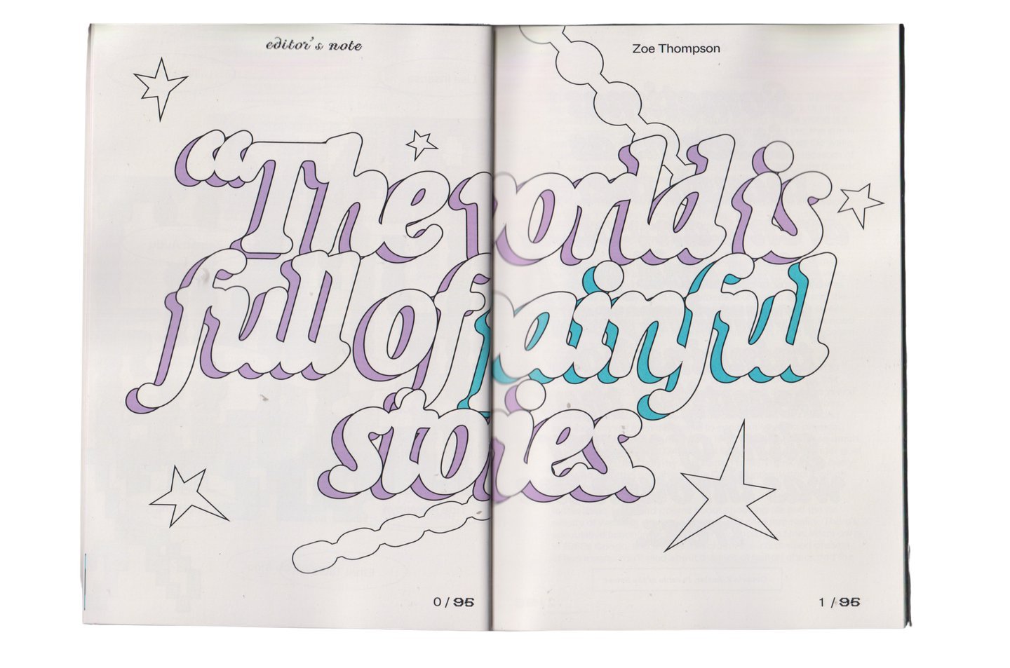 La práctica de la creación de revistas es muy querida por Zoë T: ayuda al artista a remediar la fatiga de lo digital con la presencia de lo físico. El ritual rara vez perfecto e inherentemente táctil de revisar, curar, diseñar y ensamblar se encuentra en el centro de la relación de Zoë con la práctica. “Casi todo lo que hay en Internet se puede compartir y es visible, pero puedes poner tu corazón en una revista y hacer que sea solo para ti, para tus amigos cercanos o para una comunidad específica”, dice Zoe. Este proceso increíblemente vulnerable es comunitario. Algunos de los momentos destacados de Zoë en el número 8 son el ensayo de Lisa Isansa. Encarnando lo maravilloso, aprovechando el caos – que se basó en la historia editorial negra e informó la dirección del número – y el artículo de Hillarynx llamado Jazz de semillas terrestres – una referencia a la novela ecofeminista de Octavia E. Butler Parábola del sembrador.