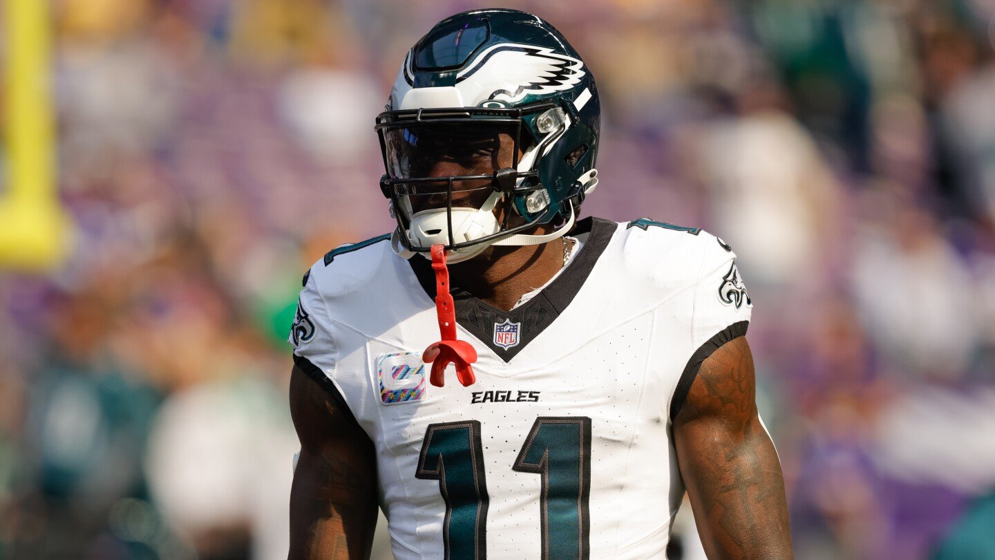 El receptor de los Eagles atrapó un pase de 37 yardas de Jalen Hurts, dándole a su equipo una ventaja temprana de 7-0. Venció al profundo Joshua Metellus para un touchdown fácil.
