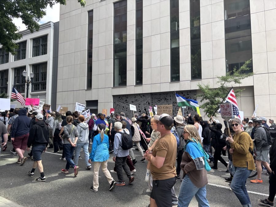 Portland, Ore. (ACUÑAR) – Miles se han reunido en todo el área metropolitana de Portland para las manifestaciones de “No reyes” el sábado para protestar por la administración Trump antes de un desfile militar de Washington que marca el 250 aniversario del ejército, así como el cumpleaños del presidente.