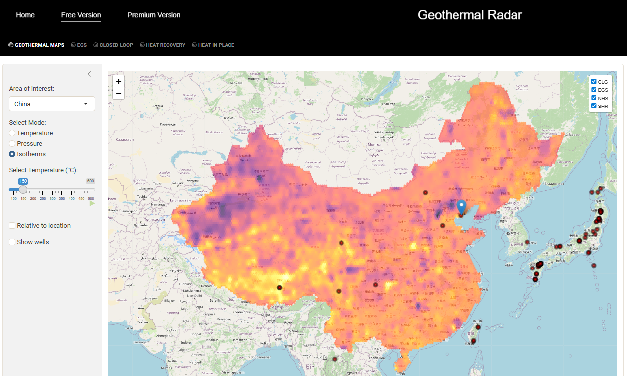 El radar geotérmico presenta más de 40 modelos geoespaciales para guiar los mapas y gradientes geotérmicos presentados. Admite geotérmicos (CLG) de “bucle cerrado”, “bucle abierto” (EGS), sistemas hidrotérmicos naturales (NHS) y geotérmicos de roca superhot (SHR) diseñada (EGS), con temperaturas que comienzan a 374 grados Celsius.