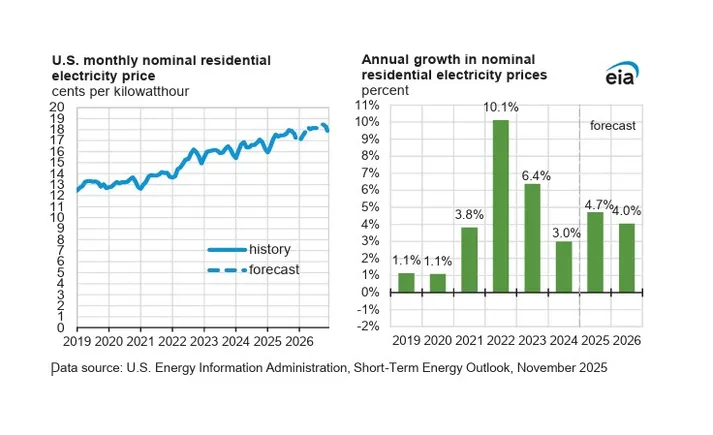 Parte del aumento de precios puede atribuirse a los costos del combustible. Se espera que los precios del gas natural aumenten en promedio a casi 3,90 USD/MMBtu este invierno y promedió $4/MMBtu en 2026 “principalmente debido al aumento de las exportaciones de gas natural licuado (GNL) en medio de un crecimiento estable de la producción”.