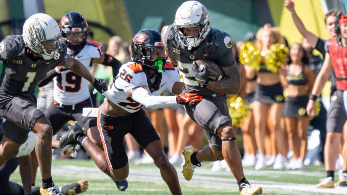 Aunque Hughes no trabajó en Oregon este año, los Ducks aún mantienen una gran ofensa, lo que llevó el programa a la semilla número 1 en los últimos 12 equipos. Universidad de fútbol Juega de sentarse a 5-0 antes del gran enfrentamiento con el número 8 de Indiana el 11 de octubre (15:30 h. ET en CBS). Duck busca correr hacia el muelle de CFP nuevamente.