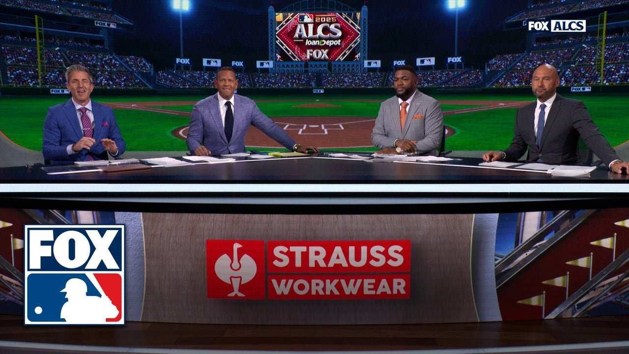 Derek Jeter, Alex Rodríguez y David Ortiz reaccionan ante la victoria de los Toronto Blue Jays sobre los Seattle Mariners en el Juego 7 de la SCLA.