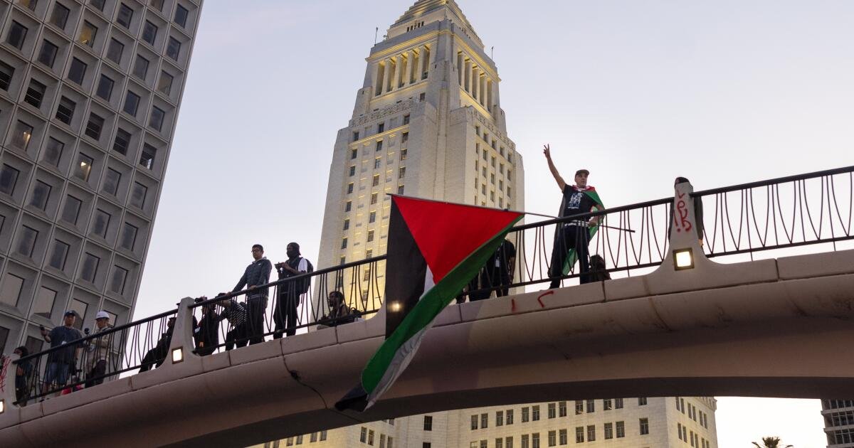 Los manifestantes continúan reuniéndose en el centro de Los Ángeles debido a las redadas de inmigración en Los Ángeles el martes.