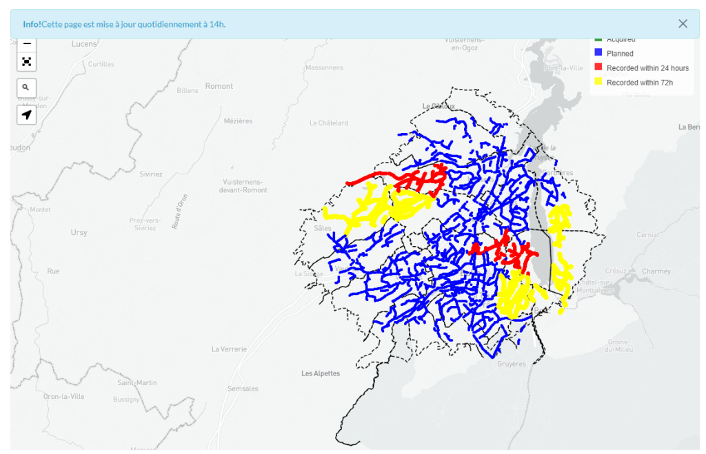 La zona de estudio de la nueva campaña es más pequeña que la de la campaña 2023 y abarca 15 municipios: Pont-en-Ocques, Sørennes, Marsans, Echarlans, Riaz, Salles, Gorbières, Botterans, Morllon, Bulle, Volruz, Voydens, Le Paguier, Brocque y Gruyères. Puedes seguir el avance de la campaña del terremoto a través de Energía geotérmica Préalpes SA sitio web.