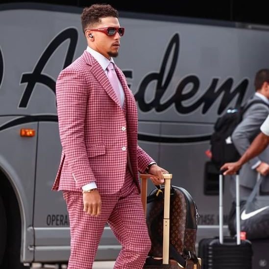 En Jacksonville para enfrentar el Jagua en “Monday Night Football” Jefes de Kansas City jugador de ataque Patrick Mahomes optó por un elegante traje rojo de tres piezas.