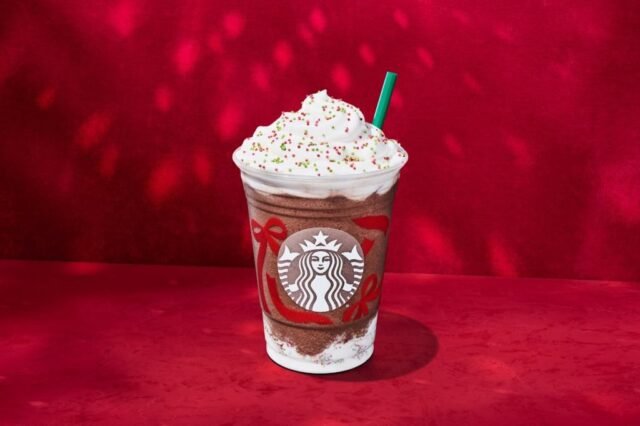 La bebida especial es un frappuccino de crema de menta y moca mezclado con hielo. Cubra con crema batida de menta y chispas rojas y verdes. Es la primera bebida de Starbucks creada exclusivamente para el minorista durante las fiestas.